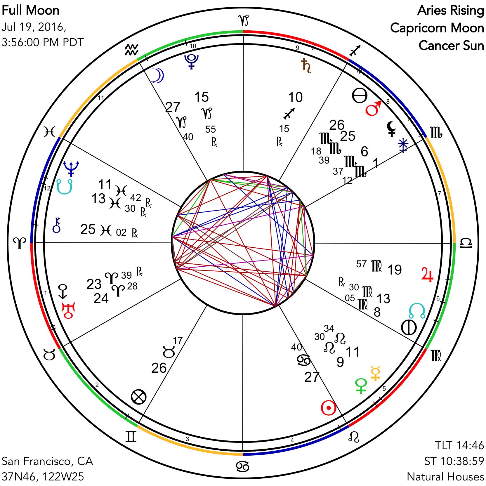 The degree of this Full Moon is also coincident with the Pluto in the U.S. chart, from July 4th, 1776, while Uranus- Eris squares national Mercury, representing the media. This will be a huge two weeks for societal and political events, especially here in the United States.