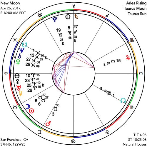 The Sabian symbol for this New Moon is a bit complex; it is for the seventh degree of Taurus, “A woman of Samaria.” In biblical times, this was the outcast tribe that the orthodox mainstream despised, so that the parable of “the good Samaritan” was intended to represent a startling contrast. For this symbol, Jones remarks upon “plumbing all experience to the depths,” and finding, in the oddest places, “real and gratifying self-fulfillment.” His keyword is “Awakening: self-giving in the hope of honest self-realization.” Coupled with the power of this New Moon configuration, we might see this additional perspective as encouraging us to move forward with our own deep changes, no matter how difficult or unusual that movement might seem according to the existing status quo, or normative consensus opinion. There is really no other choice.