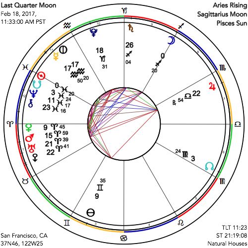 Saturday’s Last Quarter Moon is an interesting lunation, in part because the Sun changes signs, moving from innovative Aquarius into the sensitive realms of Pisces, indicating a shift from a mental and detached approach into one that is less logical and more deeply feeling. The Last Quarter Moon also represents the time in the lunar cycle when we are looking back at what we grew and harvested from the New to Full Moon, and now we begin to integrate the lessons and prepare ourselves for the beginning of another cycle. This is a particularly intense quarter moon, because it is falling between the Leo Lunar Eclipse of February 10th, and the upcoming Pisces Solar Eclipse of February 26th. This suggests that our shifts in awareness become amplified, in alignment with these heightened eclipse energies.
