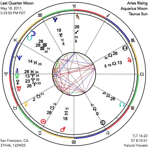 The Last Quarter Moon is activating the Lunar Node axis, as well, which just moved into Aquarius and Leo. The Moon is conjoining the South Node in Aquarius, suggesting that we point our awareness toward the universal kinship of humanity, and that we might do well to unite, rather than divide through labels, class, race, “haves” and “have nots.” Can we begin to honor ourselves and others as the radiant divine beings that we are?