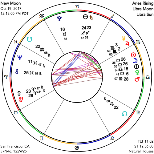 Thursday’s New Moon continues the cycle of Uranian lunations, so that as we head further into fall, we can expect more surprises and also hopefully a good dose of helpful illumination. Indeed we are ready for a brand new start, especially here in Northern California, where I reside. The fires have been devastating. We are fortunate that every thirty days we get to have such a fresh beginning, bringing new insights into play as it builds on the foundations of the old cycle. This configuration once again sees the preponderance of emphasis on the trickster planet, Uranus, as have recent New Moon lunations from the August 21st eclipse right through the previous late September cycle, when the Sun and Moon closely aspected Uranus in late Aries. This time, on October 19th, the two lights are exactly opposite to Uranus, in the same degree of Libra as Uranus occupies in Aries. Only a few minutes of a degree separates them from a perfect 180-degree aspect. Chiron, the Wounded Healer, is also again activated, being an inconjunct aspect away from the Sun and Moon of less than two degrees. There is certainly a truckload of trauma to deal with, from Sonoma and Napa counties here, to Houston, the Florida coast, Puerto Rico and even Hollywood. Scandals shake the film industry and our nation’s capital. We need to ask, what is the higher meaning of all this emphasis on both Uranus and Chiron? It is nothing less than the commitment to greater consciousness on the part of each one of us, as we are challenged to rise above the trauma in order to more fully understand the truth of our human situation, our individual and deeply-held values, and our ability to absorb the lessons of these terrible and beautiful times.