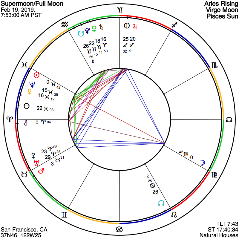 The Virgo Full Moon that takes place on Tuesday morning, February 19th (afternoon in Europe and points east) is another very interesting configuration with some potent outer planet activity, especially in connection with personal planets, such as Mercury and Venus. This is indicative of the transformational times that we find ourselves embroiled in these days, at both societal and personal levels. Additionally, the Moon in the very first degree of Virgo opposes the Sun in the first degree of Pisces, fully emphasizing these contrasting signs. The Virgo-Pisces axis represents the spectrum of polarity that exists from the mundane, nitty-gritty details of every day material life, represented by Virgo, all the way to the outermost expanses of consciousness, trans-personal awareness and cosmic, immaterial beingness that is the province of the astrological sign of Pisces. As the culminating energies of the Full Moon occupy this axis, the invitation is that we seek to conceptualize how we might build better bridges for ourselves from the very substance of our experience in this physical world to our spiritual understanding of that vast and somewhat nebulous connection. How can we call in the vast wisdom of the cosmos while engaging in simple activities like making breakfast, driving to work, or tidying up? On a more collective front, we are faced with a much larger conundrum, of how do we, as a society, invite the wisdom of natural law and spiritual understanding into places within our societies that have become atrophied by greed, both personal and corporate, and political corruption, resulting in the many errors that we see all around us: over-consumption of resources, polluted oceans, plus the very real risk of unchecked global warming with the accompanying rise of sea levels that threaten to create millions of “environmental refuges.” On one level we feel powerless to do anything about these ills, and yet on another, as astrology can help to reveal, we are totally empowered to make a real difference.