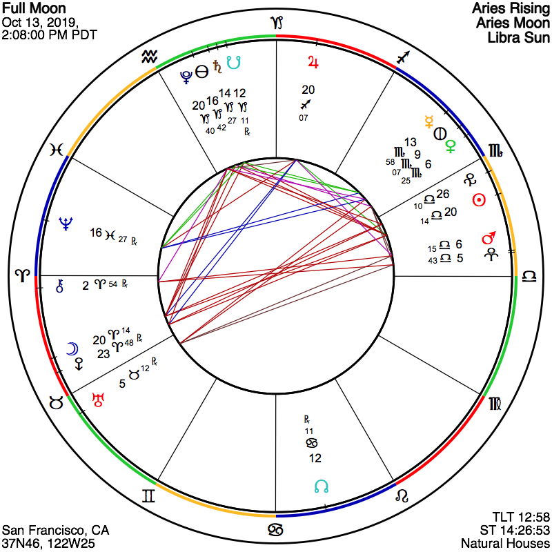 In regard to the above ideas, the Sabian Symbols for this Full Moon might also prove helpful. For the Sun, in the 21st degree of Libra (20 +), we find, “A crowd upon the beach,” which may remind us that Jupiter and Venus are actually a big part of the astrological symbolism of this Full Moon. Marc Edmund Jones, who caused these symbols to be created in the 1920s, alludes to the enjoyment of “a wider self-realization through whatever fellowship might lie at hand; a basic delight in every possible attribute of human relationship.” For the Moon, in the same degree of Aries, we find, “A pugilist entering the ring,” and this has obvious connotations in terms of the personal courage required to strive for effective self-development. Jones references: “self-realization” and “confidence in (one’s) own powers.” He goes on to say that, “Implicit in the symbolism is a need to be up and at the business of life; a mobilization of the self’s capacities in a concentrated attempt at self-establishment.” For all of us, as we navigate the difficult and confusing pathways of these fraught times, may this courageous mandate also be ours!