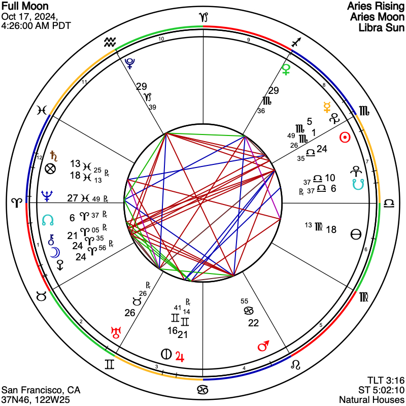 The Full Moon in Aries on October 17th at 4:26 am PT brings a mounting sense of tension, with a configuration that invokes a potent call for major growth and each of us stepping more fully into our truth, our power, and our priorities. The Full Moon is perched at 24º 35' Aries – just minutes from a conjunction with the new KBO planet Eris. This conjunction alone creates a potent and confronting energy, but it’s also just one point of a wildly intense Cardinal Cross, involving the Sun, Mars, Pluto, and more!