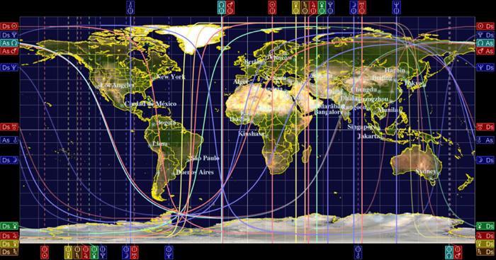 Generate and display an interactive map of the world with multiple zoom levels showing astro lines based on your natal chart.