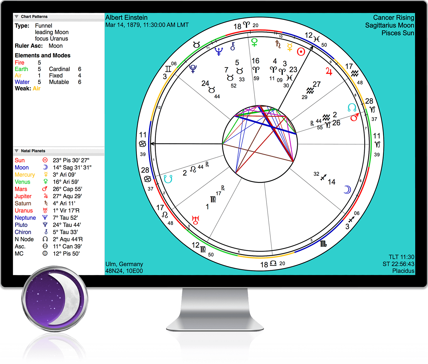 Natal charts, Transits, and Progressions with full reports you can explore and print. Plus Tri-wheels, Transit Animation, and more.